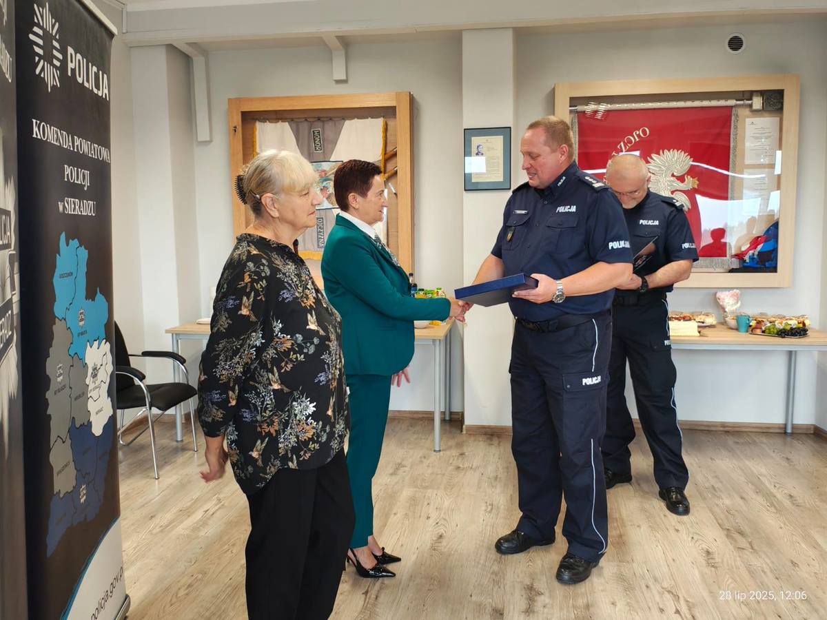 Pani Zenona Kurzaj która przepracowała w sieradzkiej komendzie ponad 33 lata, dała się poznać jako osoba skromna, sumienna i życzliwa. Choć nie nosiła munduru, jej obecność miała ogromne znaczenie – była cichym strażnikiem ładu i porządku w naszej codziennej pracy. Pani Zenona, rozpoczęła swoją pracę 18 listopada 1992 roku w Komendzie Wojewódzkiej Policji w Łodzi, a od marca 1999 roku nieprzerwanie związana była z Komendą Powiatową Policji w Sieradzu, pracując w Zespole ds. Ewidencji, Rozliczeń i Zaopatrzenia. I tak aż do tej chwili – z oddaniem i rzetelnością wykonywała swoje obowiązki.