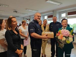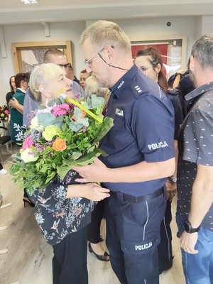 Do życzeń i podziękowań dołączyli również pozostali uczestnicy uroczystości, którzy wręczyli kwiaty oraz upominki.