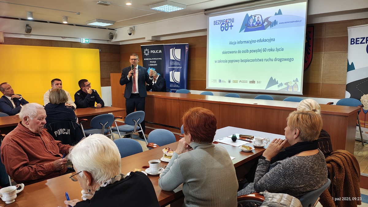 1 października w Starostwie Powiatowym w Sieradzu odbyła się debata, która rozpoczęły warsztaty profilaktyczno –edukacyjne skierowane do osób powyżej 60 roku życia. Ich celem było podniesienie świadomości i wspierania seniorów w bezpiecznym poruszaniu się po drogach. Spotkanie rozpoczął sekretarz Krajowej Rady Bezpieczeństwa Ruchu Drogowego Konrad Ronik, który powitał zaproszonych gości. Uczestniczyli w nim Starosta Sieradzki Mariusz Bądzior, Wiceprezydent Miasta Sieradza Rafał Matysiak, Komendant Powiatowy Policji w Sieradzu insp. Piotr Bielewski, Dyrektor Wojewódzkiego Ośrodka Ruchu Drogowego w Łodzi a jednocześnie Sekretarz Wojewódzkiej Rady Bezpieczeństwa Ruchu Drogowego– Michał Gogolewski, Zastępca Dyrektora Wojewódzkiego Ośrodka Ruchu Drogowego w Łodzi Odział Terenowy w Sieradzu Witold Kiełbasa, podinsp. Jarosław Ryl Naczelnik Wydziału Ruchu Drogowego KPP Sieradz, policjanci Wydziału Ruchu Drogowego łódzkiej komendy wojewódzkiej oraz funkcjonariusze sieradzkiej jednostki. Gościem specjalnym był Maciej Wisławski – pilot i kierowca rajdowy.