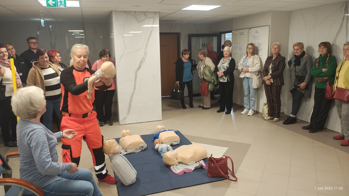 Druga część spotkania poświęcona była Strefie Zdrowia. Wykwalifikowani ratownicy medyczni przeprowadzili krótki instruktaż udzielania pierwszej pomocy. Następnie wykorzystując fantomy seniorzy mogli ćwiczyć praktyczne umiejętności podstawowych czynności ratunkowych. Przygotowany został również specjalny tor przeszkód, który możzna było pokonać w narko- i alkogoglach. Zamysłem organizatorów było pokazanie jak zaburzenia świadomości powoduje u kierowców alkohol i narkotyki. Miało to na celu uświadomienie seniorom jak ważne jest przestrzeganie zasady ograniczonego zaufania na drodze. W związku z przypadającym na dzień 1 października Ogólnopolskim Dniem Odblasków, policjanci z Wydziału Ruchu Drogowego KWP w Łodzi rozdali seniorom elementy odblaskowe. Miały on służyć jako przypomnienie o konieczności dbania o własne bezpieczeństwo. Wszyscy byli zgodnie, że naszą wspólną sprawą jest budowanie bezpieczeństwa zarówno na drogach jak i w naszym otoczeniu.Debata był tez doskonałą okazją, aby omówić działanie interaktywnego narzędzia do komunikacji pomiędzy społeczeństwem a Policją, jakim jest "Krajowa Mapa Zagrożeń Bezpieczeństwa”. Wskazano jego zalety i przestawiony został sposób przekazywania informacje o zagrożeniach. Przypomniano również zasady działania aplikacji „Moja komenda”, która umożliwia kontakt z właściwym dzielnicowym