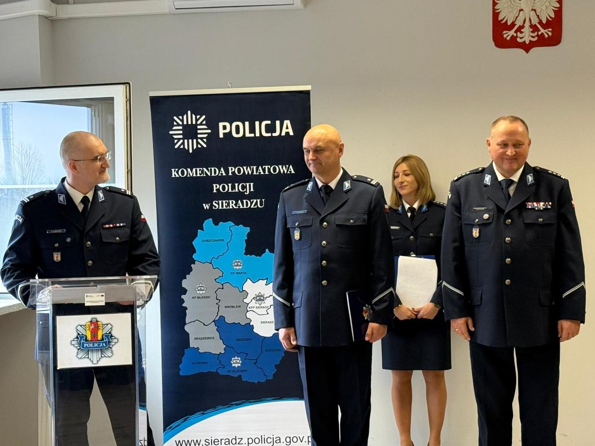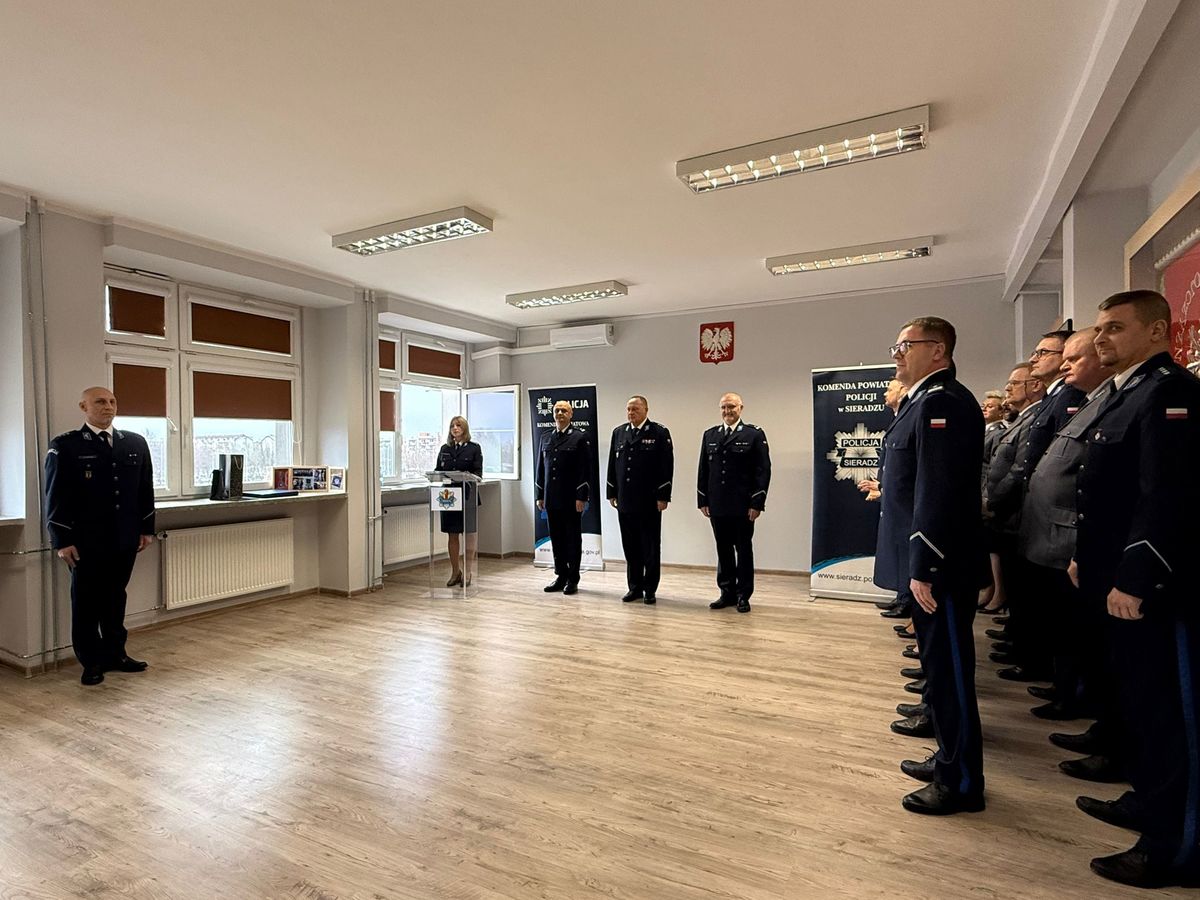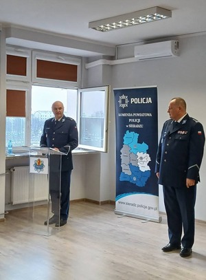 Uroczystość ta związana była również z powierzeniem obowiązków służbowych na stanowisku I Zastępcy Komendanta Powiatowego Policji w Sieradzu podinsp. Tomaszowi Jamińskiemu.Odczytany pstał rozkaz Komendanta Wojewódzkiego Policji w Łodzi nadinsp. Arkadiusza Sylwestrzaka, który wręczył Komendant Powiatowy Policji w Sieradzu insp. Piotr Bielewski. W dalszej części przedstawiona została policyjna droga podinsp. Tomasza Jamińskiego.