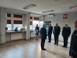 Komendant Powiatowy Policji w Sieradzu insp. Piotr Bielewski pogratulował podinsp. Tomaszowi Jamińskiemu otrzymanego awansu życząc, aby był on źródłem satysfakcji i motywacji do kolejnych wyzwań oraz otwierał nowe możliwości zawodowe.