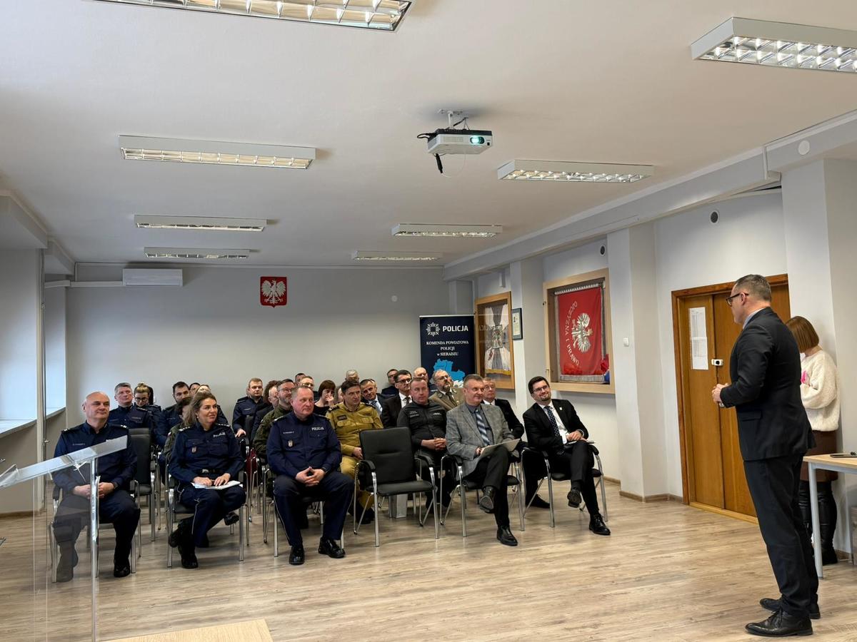 Początek roku to zawsze czas na podsumowanie minionych 12 miesięcy. Okres analiz, wyciągania wniosków i planowania działań. 4 lutego 2026 roku w siedzibie Komendy Powiatowej Policji w Sieradzu odbyła się odprawa roczna, która miała na celu podsumowanie pracy policjantów i osiągniętych przez nich wyników. W spotkaniu udział wzięli I Zastępca Komendanta Wojewódzkiego Policji w Łodzi insp. Anita Tim – Warchał, Starosta Powiatu Sieradzkiego Mariusz Bądzior, Prezydent Miasta Sieradza Paweł Osiewała, Przewodniczący Rady Miasta Sieradza Michał Pabich, Wójt Gminy Burzenin Jarosław Janiak, Wójt Gminy Brzeźnio Dorota Kubiak, Prokurator Rejonowy w Sieradzu Ewa Bartkiewicz – Kesiak, Zastępca Prokuratora Rejonowego w Sieradzu Marta Muszyńska – Siwek. Zaprzyjaźnione służby mundurowe reprezentowali: Komendant Powiatowy Państwowej Straży Pożarnej w Sieradzu starszy brygadier Radosław Jadwiszczak, Zastępca Dyrektora Zakładu karnego – por. Piotr Lewandowski, Zastępca Szefa Sztabu 15 Sieradzkiej Brygady Łączności ppłk. Cezary Kacprzak, kpt Anna Szaflik z Wojskowego Centrum Rekrutacji, Nadleśniczy Nadleśnictwa Złoczew Edward Janusz, przedstawiciel Okręgowego Zarządu Koło Łowieckiego w SieradzuPiotr Wojtczyk. W odprawie udział wzięli również Przewodniczący NSZZ Policjantów przy KPP w Sieradzu Dariusz Kaczmarek, oraz kadra kierownicza i policjanci sieradzkiej jednostki.