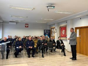 Komendant Powiatowy Policji w Sieradzu insp. Piotr Bielewski w swoim wystąpieniu podkreślił doskonałą współpracę z samorządami oraz ich wsparcie rzecz poprawy bezpieczeństwa mieszkańców powiatu sieradzkiego. W 2024 roku sieradzka komenda uzyskała pomoc finansową na zakup oznakowanego radiowozu. Pan Komendant podziękował za doskonalą współpracę z Prokuraturą Okręgową oraz Rejonową w Sieradzu w zakresie zwalczania przestępczości. Podkreślił bardzo dobrą współpracę ze służbami mundurowymi: m.in. 15 SBWD, Komendą PSP, Zakładem Karnym, Strażą Miejską, Służbą Ochrony Kolei, Strażą Rybacka, Strażą Leśną, Żandarmerią Wojskową, a także innymi instytucjami.