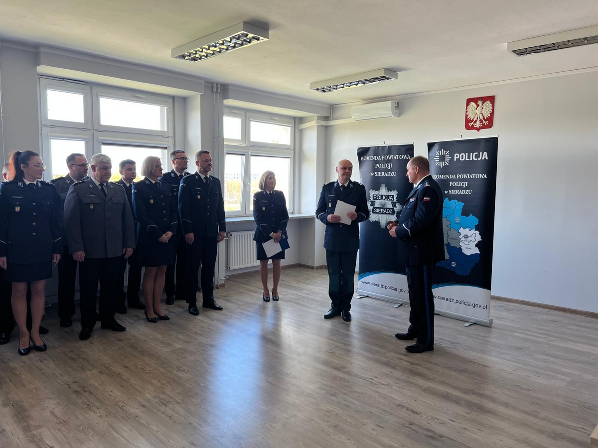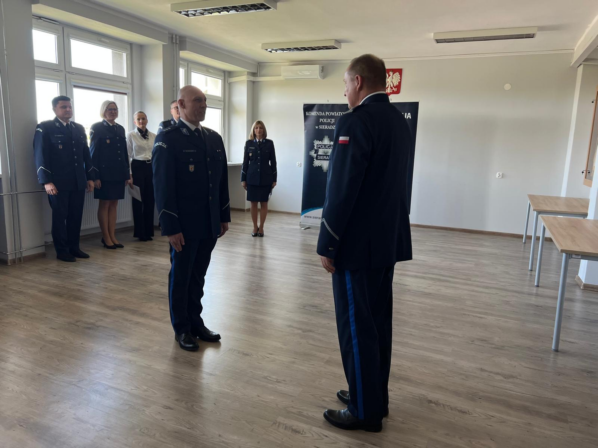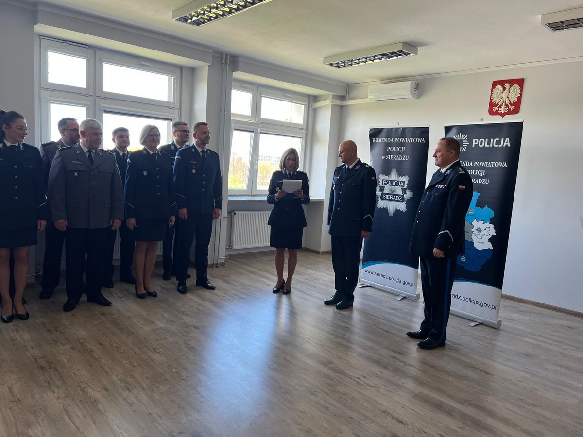 27 kwietnia 2026 roku w sieradzkiej komendzie odbyła się uroczysta zbiórka z okazji powołania na stanowisko I Zastępcy Komendanta Powiatowego Policji w Sieradzu podinsp. Tomasza Jamińskiego, który od 30 stycznie 2026 roku pełnił obowiązki zastępcy komendanta. Ceremonia rozpoczęła się od meldunku złożonego przez dowódcę uroczystości komisarza Macieja Kołeczka. Następnie odczytany rozkaz personalny Komendanta Wojewódzkiego Policji w Łodzi nadinsp. Arkadiusza Sylwestrzak o powołaniu podinsp. Tomasza Jamińskiego na stanowisko I Zastępcy Komendanta Powiatowego Policji w Sieradzu. Komendant Powiatowy Policji w Sieradzu inspektor Piotr Bielewski wręczył rozkaz oraz pogratulował nowemu zastępcy, życząc powodzenia i dalszych sukcesów na zawodowej drodze. Podinsp. Tomasz Lubiński podziękował za docenienie jego dotychczasowej pracy i okazane zaufanie. Gratulacje oraz życzenia pomyślności i wielu sukcesów na nowym stanowisku złożyła Panu Komendantowi kadra kierownicza, policjanaci i pracownicy sieradzkiej jednostki.