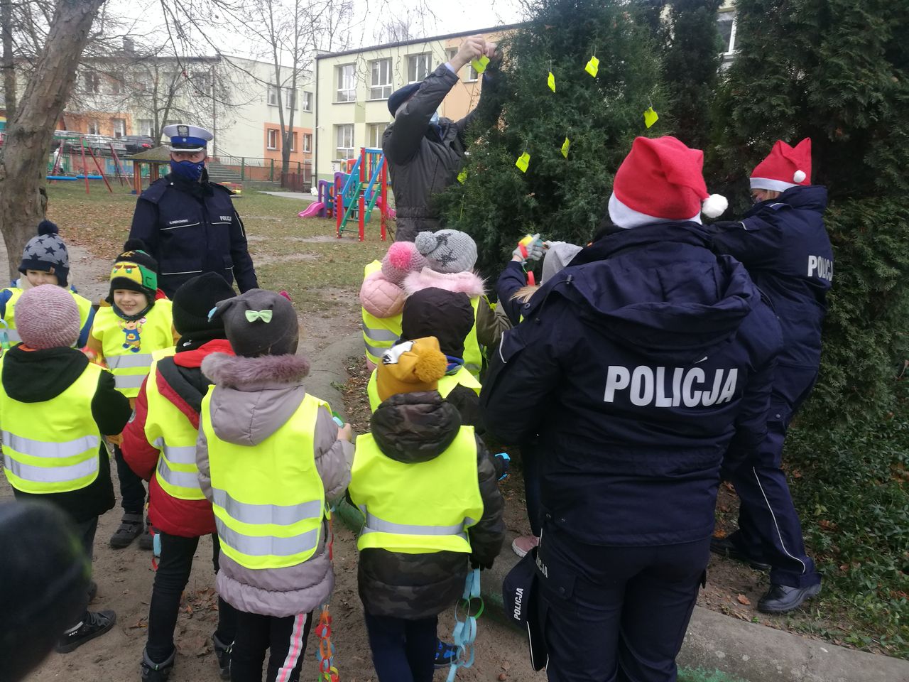 Jak co roku policjanci sieradzkiej komendy w ten „szczególny dzień” pamiętają o najmłodszych mieszkańcach naszego regionu. „Mikołajowy” wspólny patrol policjantów i pracownika WORD- u zawitał do przedszkolaków. Mikołaj nie poruszał się jednak saniami, lecz radiowozem. Dzięki wsparciu sieradzkiego Oddziału Terenowego Wojewódzkiego Ośrodka Ruchu Drogowego dzieci otrzymały prezenty w postaci kamizelek odblaskowych i breloczków. Przedszkolaki z sieradzkiej „czwórki” i „piętnastki” wspólnie z policjantami udekorowały świąteczne drzewka elementami odblaskowymi.