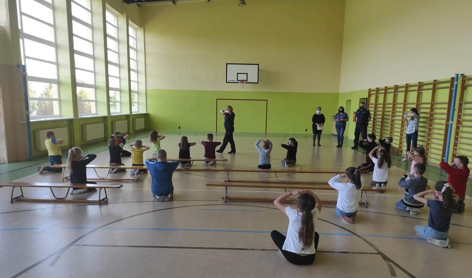 Podczas wizyty w szkole policyjny profilaktyk mł. asp. Bożena Grobelna spotkała się również z uczniami szkoły, aby uświadomić najmłodszym jak ważny jest obowiązek właściwej opieki nad zwierzęciem oraz jakie zagrożenia wynikają z kontaktu z obcym psem. Ponadto omówiła sposoby postępowania w przypadku ataku agresywnego zwierzęcia. Zaprezentowała dzieciom podstawowe metody i pozycje obronne. Policjantka nawiązała również do nadchodzących wakacji i przypomniała uczniom podstawowe zasady bezpieczeństwa podczas letniego wypoczynku