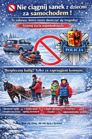 Zimowa aura sprzyja różnym aktywnościom na świeżym powietrzu. Policjanci apelują o zachowanie szczególnej ostrożności i przestrzeganie przepisów, ponieważ niebezpieczne zabawy mogą doprowadzić do tragedii. Do poważnego w skutkach wypadku doszło podczas kuligu, w wyniku którego poszkodowana została 12 – letnia dziewczynka.